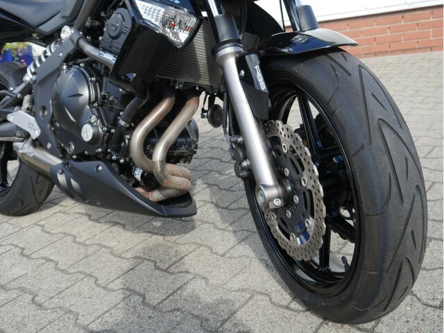 Die Kawasaki ER-6n ist ein absoluter Klassiker unter den Naked Bikes endash zuverlässig, wendig und mit einem kräftigen Zweizylinder ausgestattet. Dank ihrer angenehmen Sitzposition und dem sportlichen Fahrverhalten eignet sie sich perfekt für Einsteiger und erfahrene Biker, die ein unkompliziertes und spaßiges Motorrad suchen.