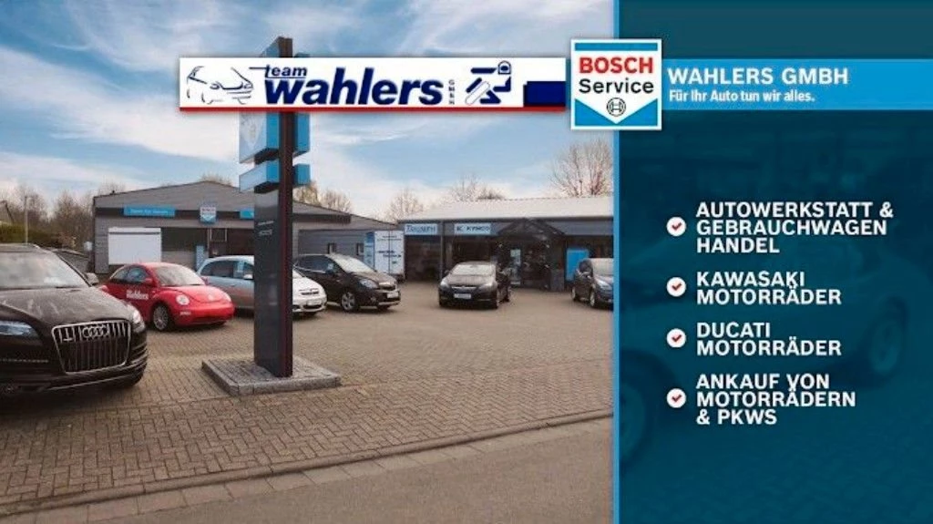 Wir liefern Ihnen Ihr Motorrad bundesweit durch unsere Partnerspedition gegen einen geringen Aufpreis an. Wir vereinbaren dann mit Ihnen einen Liefertermin für das Fahrzeug. Der Bahnhof Scheeßel ist nur 5 Gehminuten von unserem Geschäft entfernt. Auto- & Motorrad Team Wahlers GmbH - Ihr Kawasaki-und Ducati-Vertragshändler Mitte Hamburg-Bremen an der B 75. Kymco-Vertragshändler & Triumph-Servicehändler. Offizieller BOSCH Car-Service. Autos, Motorräder und mehr.
