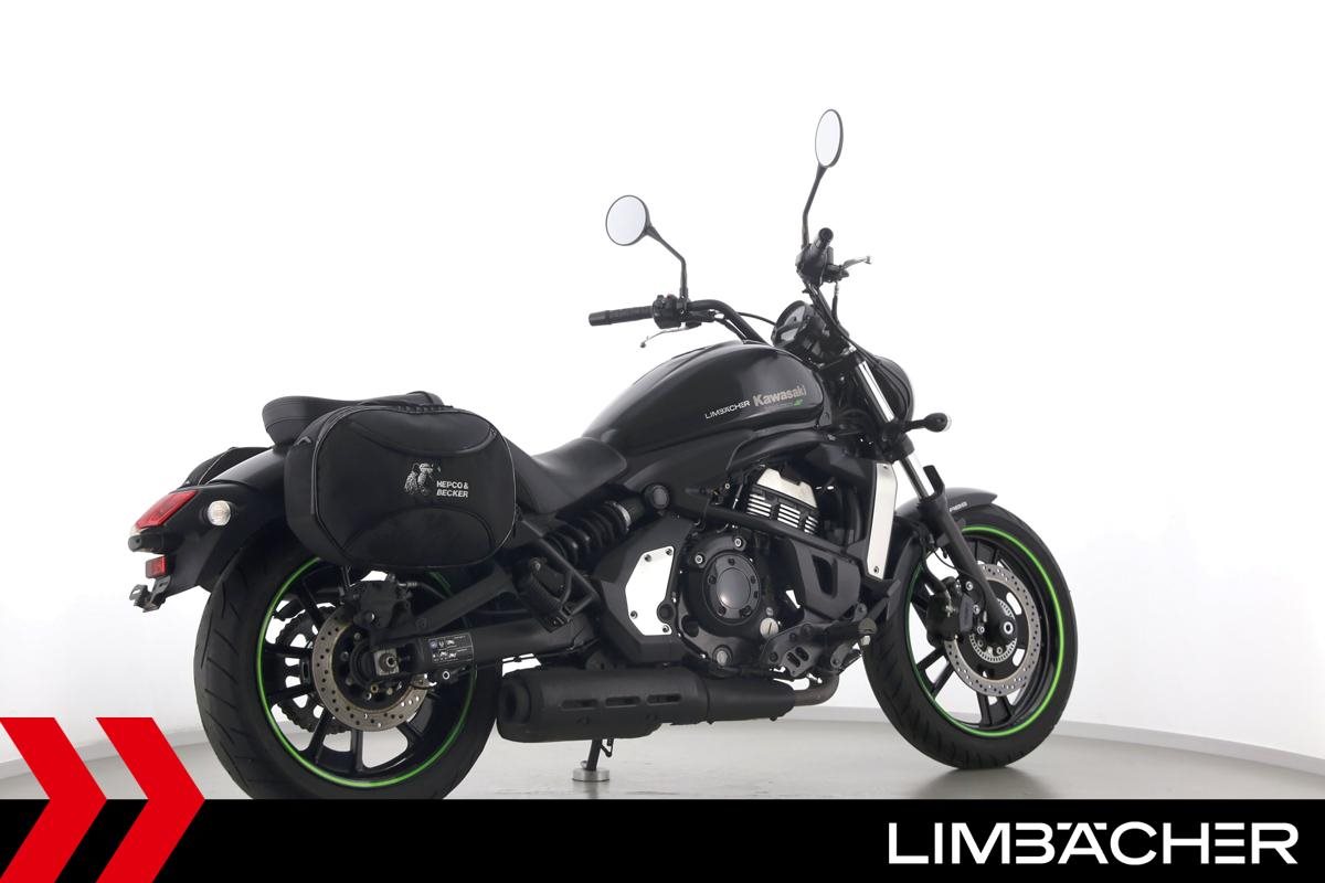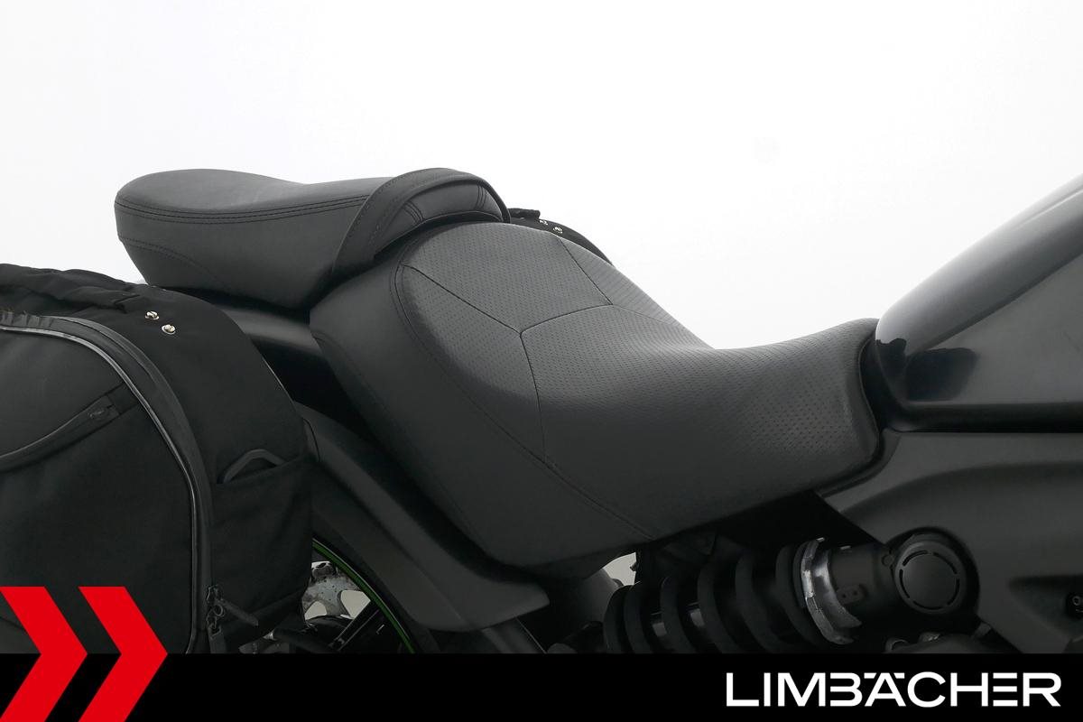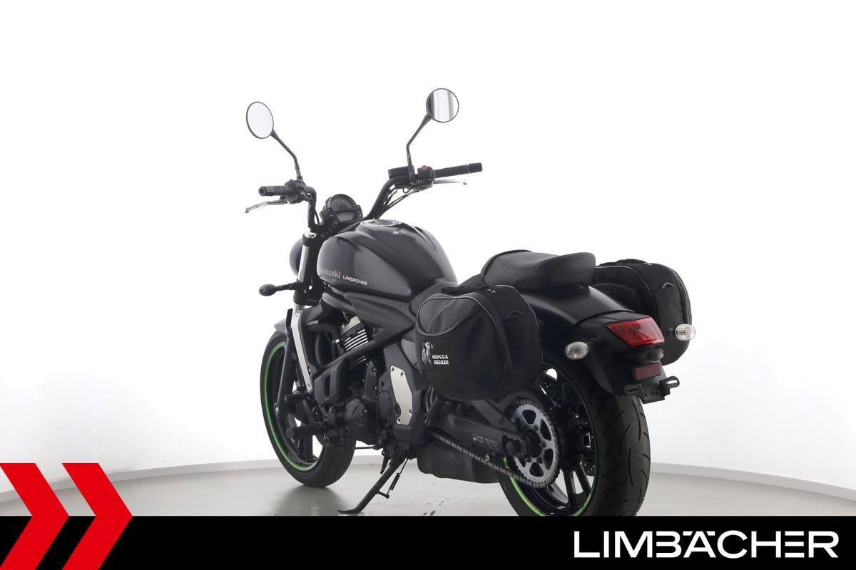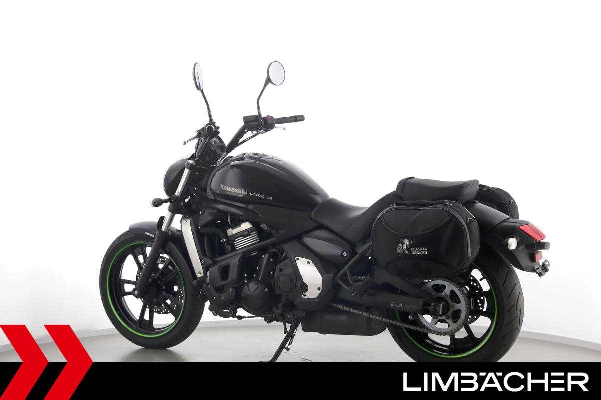 Eine Kawasaki Vulcan S aus zweiter Hand in gepflegtem Zustand u.a. mit Hepco&Becker-Packtaschen sowie Montageheber-Aufnahmen.