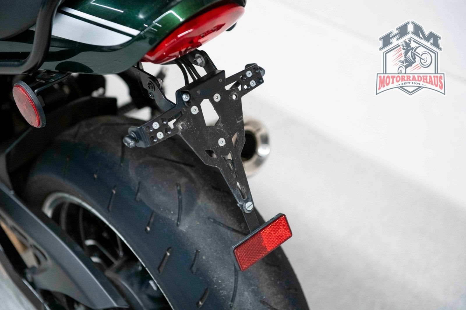 Das Motorrad hat am Heck leichte Gebrauchsspuren vom Auf & Absteigen.