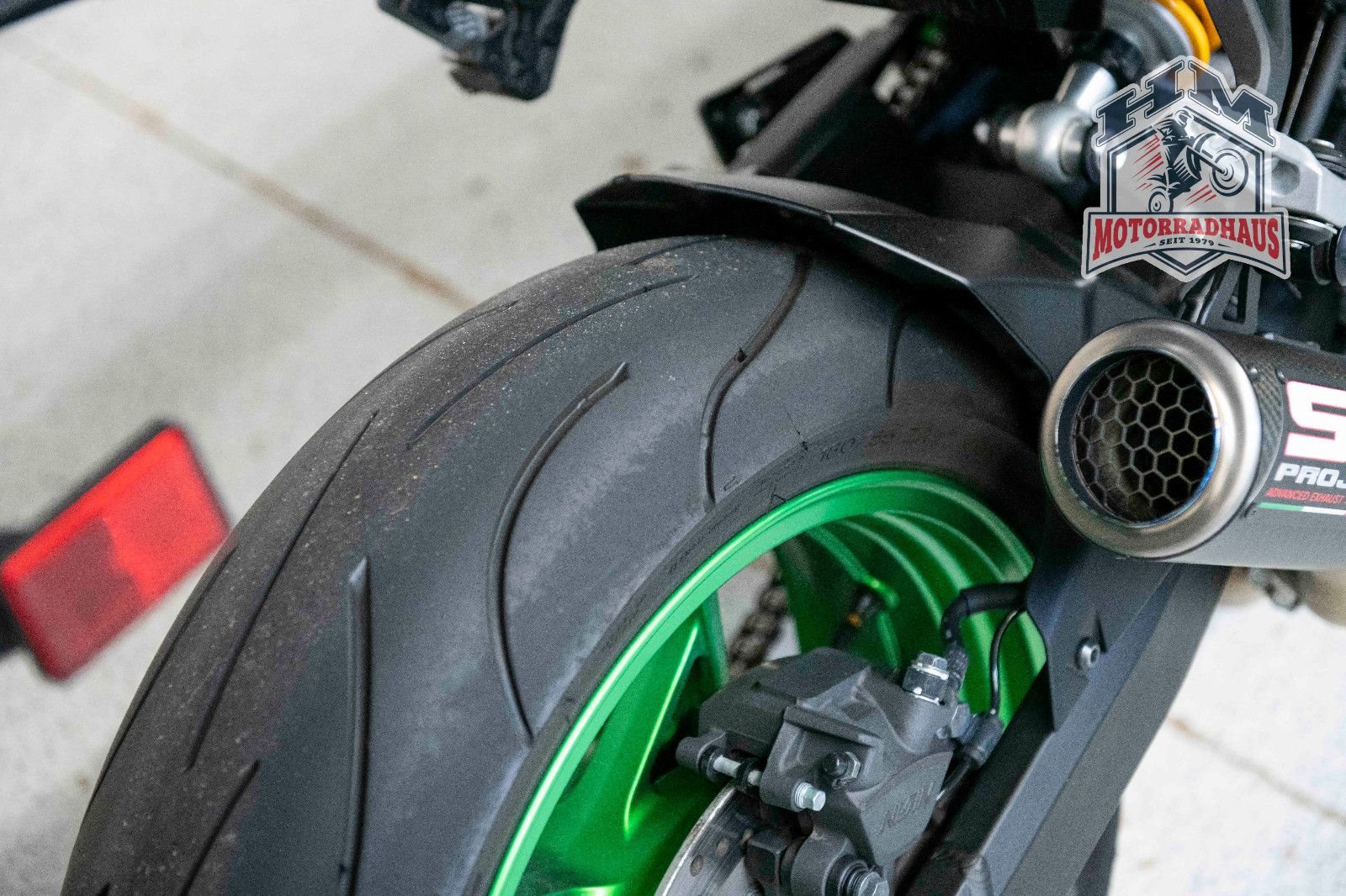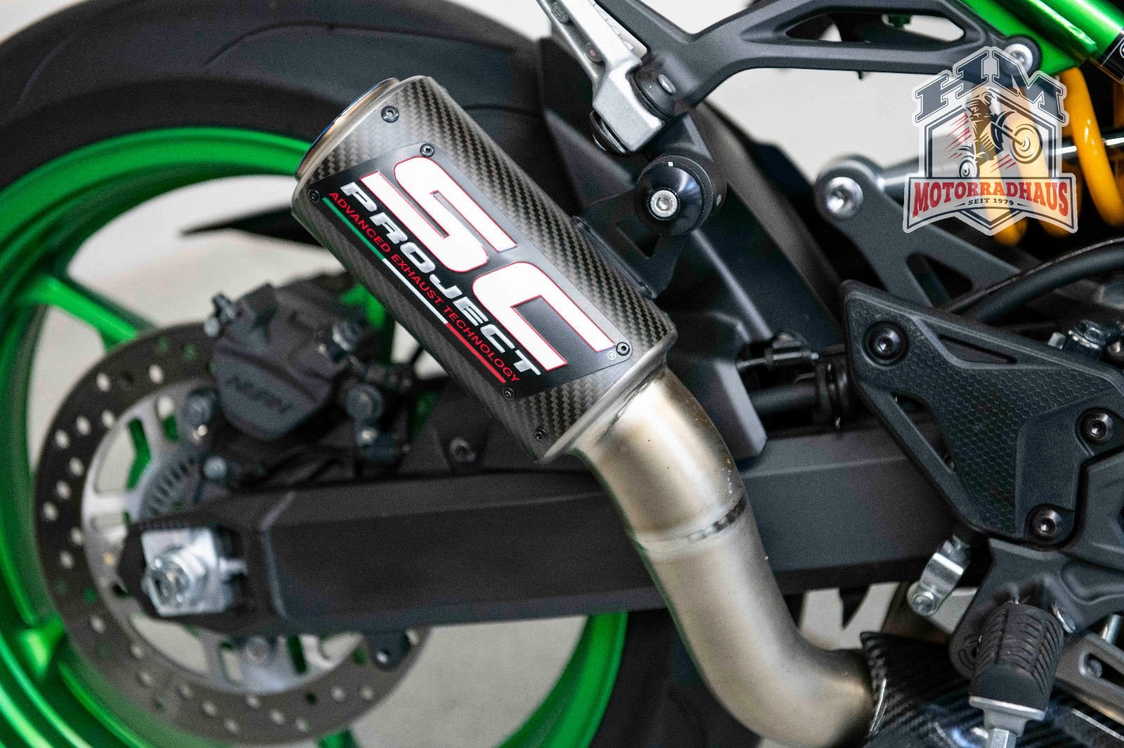 Die Maschine ist um & unfallfrei.Es ist ein SC-Project Slip-On montiert.