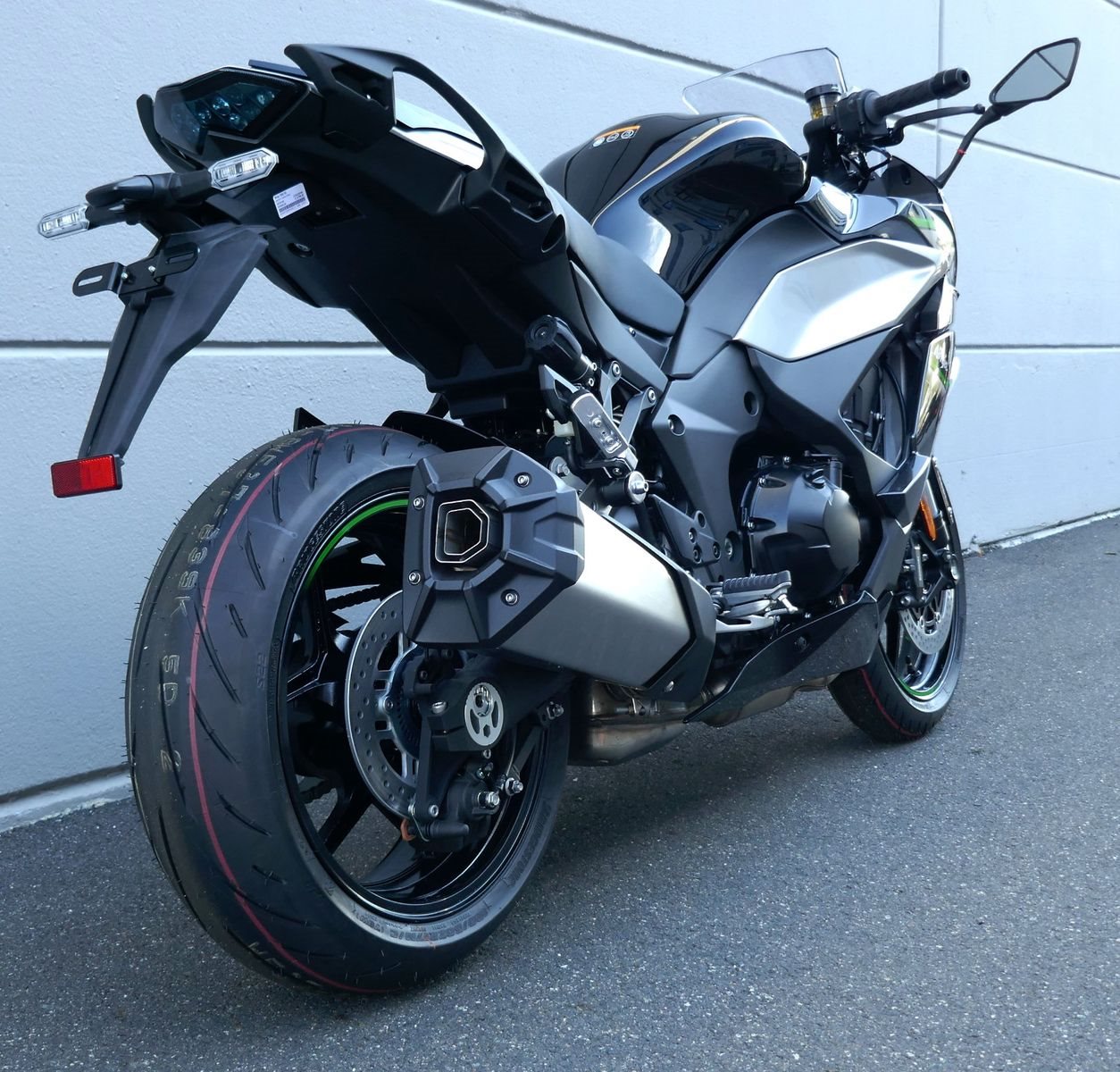 Die neue Verkleidung und der einseitige Endschalldämpfer verleihen der Ninja 1000SX eine sportliche und dynamische Optik, die zu den Fahreigenschaften passt und die Zugehörigkeit zur NinjaFamilie unterstreicht. Alle Beleuchtungselemente sind mit LEDs bestückt, was für einen noch hochwertigeren Look sorgt.