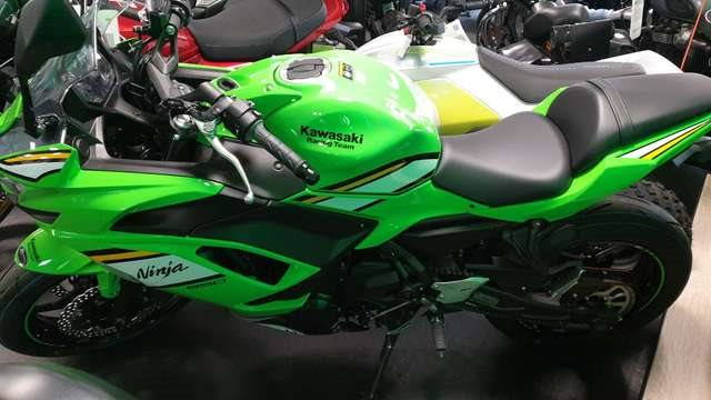 Wir bieten dir hier die neue Ninja 650 Modell Der Spirit von Sportlichkeit und Dynamik findet sich auch in der Ninja 650. Der Reihenzweizylinder mit 649 cm hat die notige Power und die Ausstattung kann sich sehen lassen. Der beeindruckend sportliche Ninja-Style wird mit einer aufrechten Sitzposition kombiniert. Fur mehr Sicherheit sorgt zudem die Traktionskontrolle (KTRC). Das macht tagliche Einsatze in der Stadt oder den Weg zur Arbeit ganz entspannt. In der Farbe grün Das Fahrzeug ist für beide Fahrerlaubnisklassen A2 und A Die Höhe kann individuell verändert werden. So das auch kleinere Fahrer Spass und Sicherheit genießen können. Machen Sie jetzt einen Termin zur Probefahrt! Gerne Finanzieren wir auch ihren Traum von einem Neuen Fahrzeug. Wir sind Vertragspartner folgender Marken im Raum Weilburg-Limburg Zweirad: Suzuki, Kawasaki, Royal Enfield, Peugeot, Malaguti, KSR Besuchen Sie uns in Weilburg, Friedenbachstrasse 10 Wir bieten: - Meisterwerkstatt und Geschultes Personal- 24/48 Stunden E-Teile Service- Mobilitätsservice- Hol und Bring-Service- Mietstation- Bekleidung und Zubehör- Ständig eine große Anzahl an gepflegten und preiswerten Fahrzeugen- Finanzierung mit und ohne Anzahlung bei flexiblen Laufzeiten- Inzahlungnahme und Ankauf von gepflegten Fahrzeugen- Bundesweiter Zulassungsservice und LieferungMelden sie sich gerne unter Email: weilburg (at) braunis-bike-shop.de oder telefonisch unter 06471-7888.Unser Team freut sich auf Ihren Besuch und berät Sie gerne. Unsere Öffnungszeiten: Montags GeschlossenDienstag-Freitag: 10.00 Uhr - 12.00 Uhr und 13.00 Uhr - 18.00 UhrSamstag von 9.00 Uhr - 13.00 Uhr Gerne liefern wir unsere Fahrzeuge auch innerhalb Deutschlands ,gegen einen entsprechenden Aufpreis von 269.-€.Irrtum, Änderungen und Zwischenverkauf vorbehalten. Es gelten unsere AGB