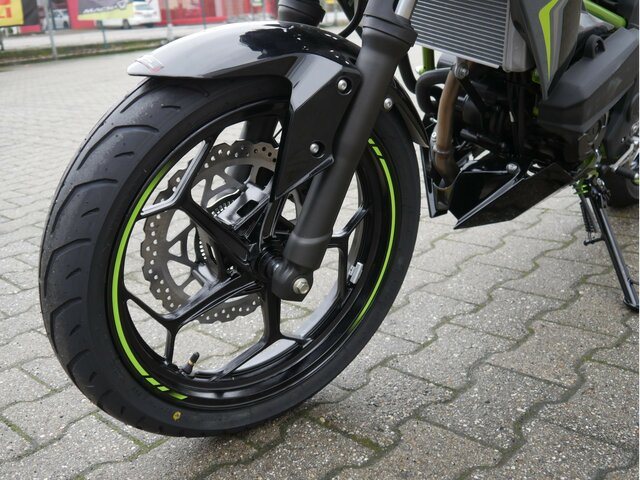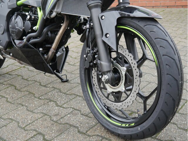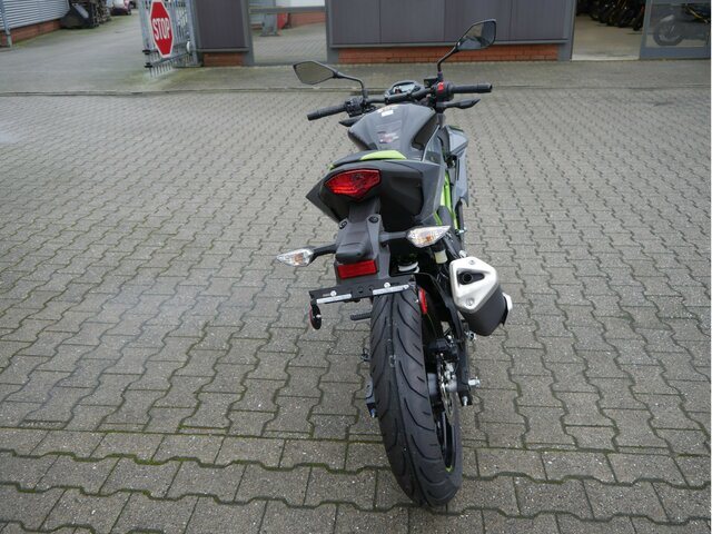 Mit Kawasakis einzigartiger Sugomi-Designphilosophie, die sofort ins Auge fällt, präsentiert sich das kleinste Mitglied der Z-Familie. Auffallen und ein starkes Naked-Bike-Statement setzen endash genau dafür ist sie da. Der freiliegende Gitterrohrrahmen verbindet sich mit der minimalistischen, aggressiven Z-Verkleidung und lädt zu sportlicher Fahrweise ein. Der 15-PS-Motor (11 kW) ist sowohl einsteigerfreundlich als auch so sportlich, wie man es von Kawasaki erwartet. Die Z125 kann mit dem A1-Führerschein oder mit dem Autoführerschein ab 25 Jahren (B196) gefahren werden und bietet ideale Voraussetzungen für Führerschein-Neulinge.