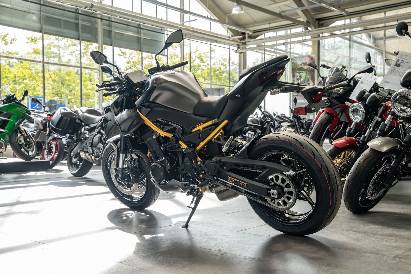 Mit ihrem markanten, aggressiven Sugomi-Design, ihrer erstklassigen Ausstattung und der geballten Power des 948-cm-Motors setzt die Z900 (70kW) ein Statement auf jeder Straße.